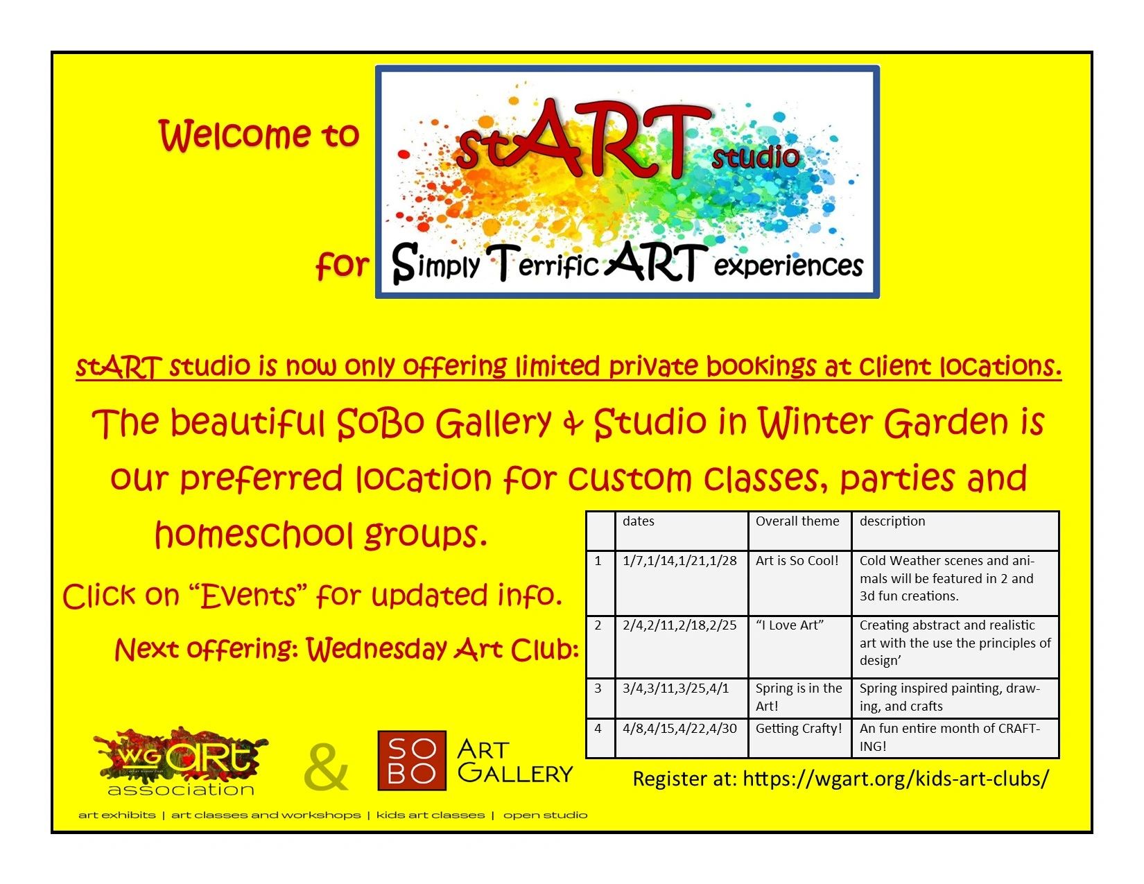 Having retired from OCPS Visual Arts, I am excited to be facilitating quality art programming through stART studio. I am a key part of child & family programs with SOBO Gallery, Winter Garden Art Association, associated with Nerhling Gardens, and have been an education consultant with Crayola, and provided classes at various venues.